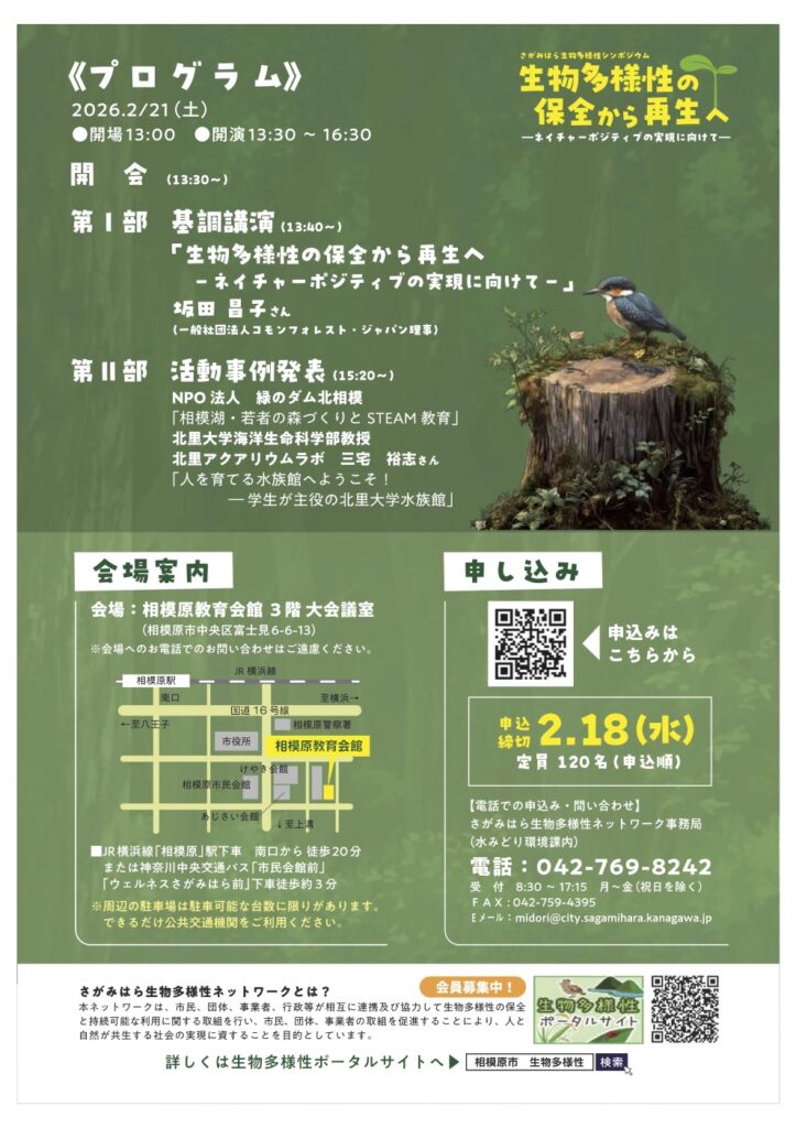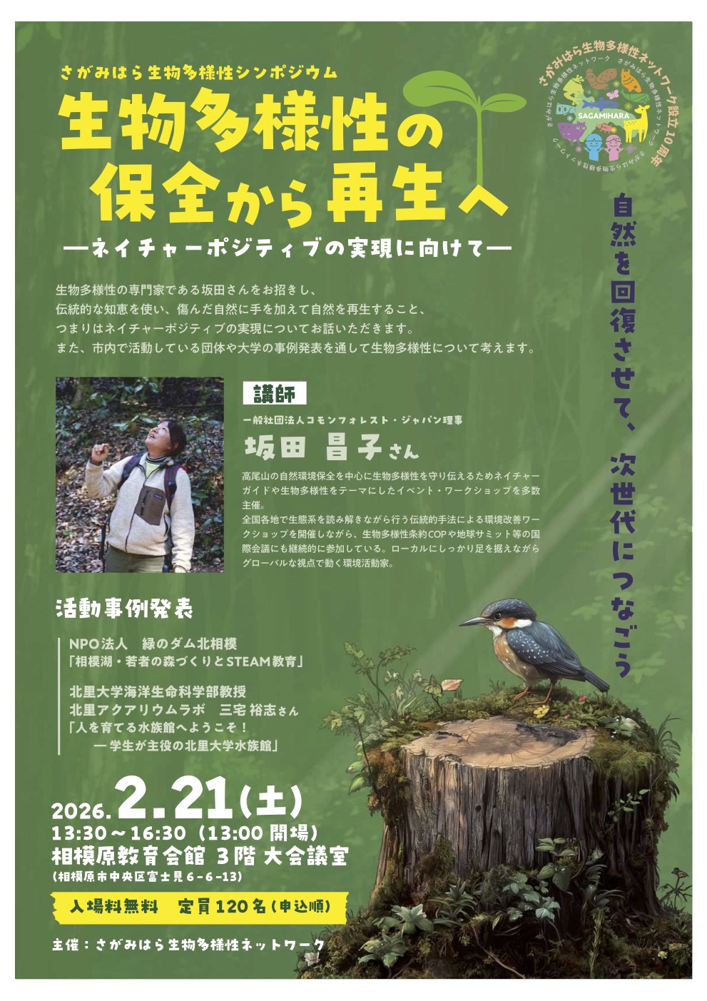 さがみはら生物多様性ネットワーク設立10周年記念事業「さがみはら生物多様性シンポジウム」を開催します。