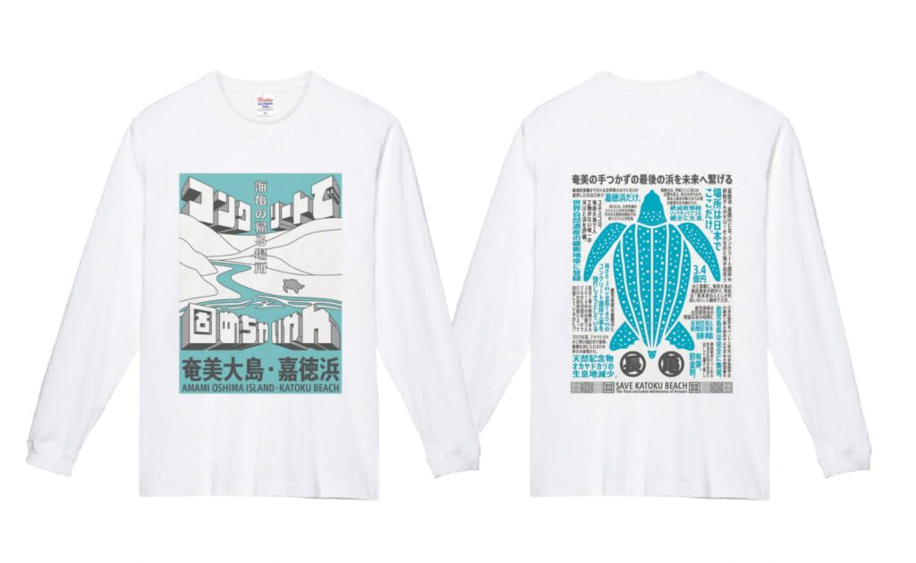 内地のほとんどの人は嘉徳浜のことを知りません。メッセージが強烈なTシャツですが、素晴らしいデザイナー加来慎太郎さんが協力してくれ、とっても面白いデザインになりました。